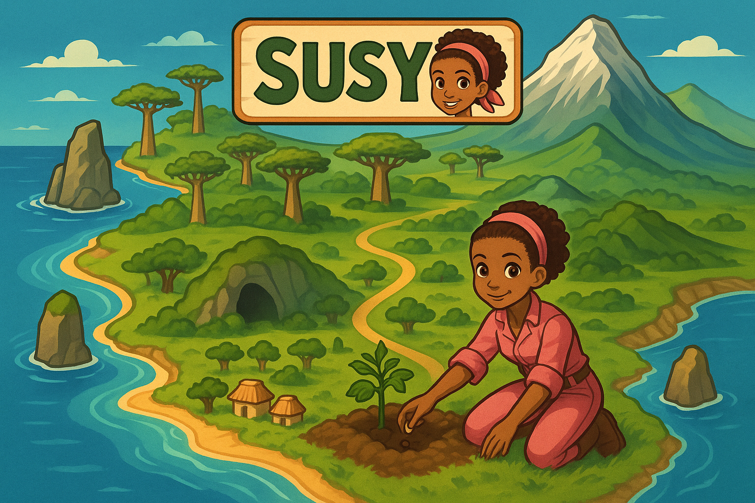 Salut ! Moi, c’est Susy, je vis sur une île magique : Madagascar.